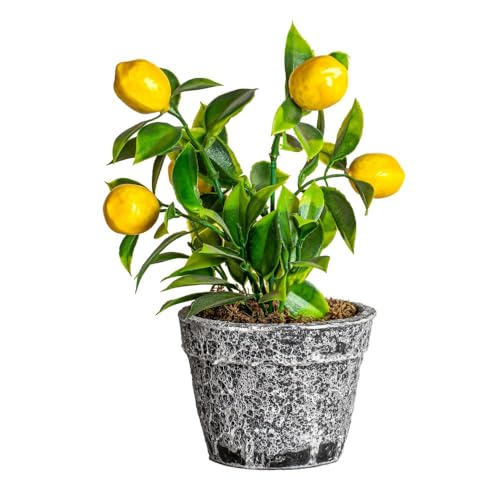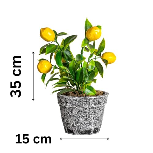 Generic - نبات ليمون صناعي في وعاء رمادي مزخرف، نبات صناعي بوعاء لديكور المنزل والمكتب، ليمون اصفر واقعي واوراق خضراء، لمسة ديكور داخلية 35 × 15