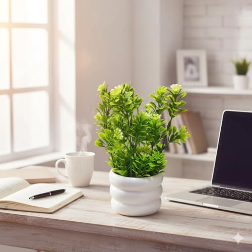 Generic - نبات صناعي في وعاء بورسلين - نباتات خضراء واقعية نابضة بالحياة للمكتب والرف وديكور المنزل، منخفض الصيانة للديكور الداخلي، بلون أبيض