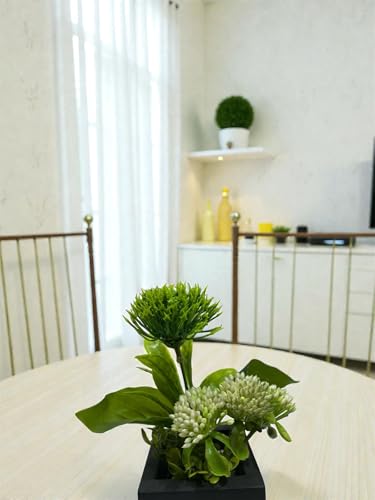 Generic - فازة نباتات صناعية مع زهور خضراء وبيضاء، تصميم عصري بقاعدة سوداء، ديكور منزلي ومكتبي
