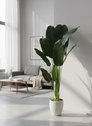 Generic - نبات ديكوري اصطناعي بأوراق خضراء كبيرة في أصيص أسود، ديكور عصري للمنزل والمكتب (كبير.)