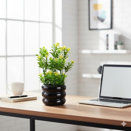 - مواد فاخرة: مصنوعة من نباتات بلاستيكية عالية الجودة ووعاء بورسلين متين بتصميم عصري ثلاثي الحلقات بلمسة نهائية سوداء أنيقة
