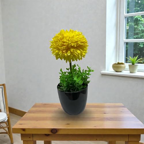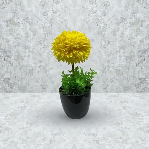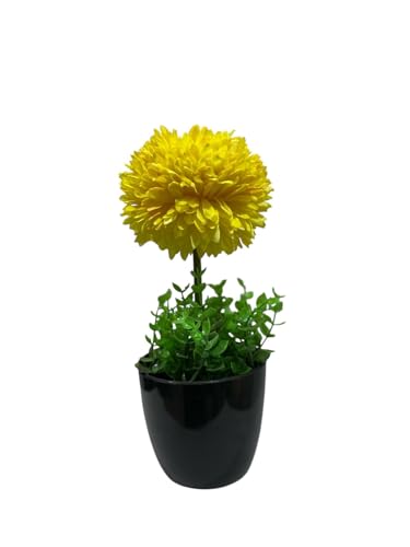 - تصميم واقعي وجذاب: نبات صناعي بوردة صفراء زاهية على شكل كرة مع أوراق خضراء طبيعية المظهر يضيف لمسة جمالية راقية لأي مساحة