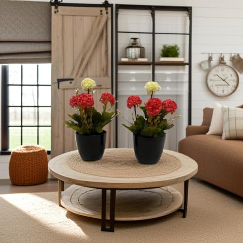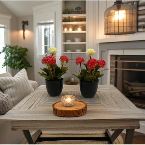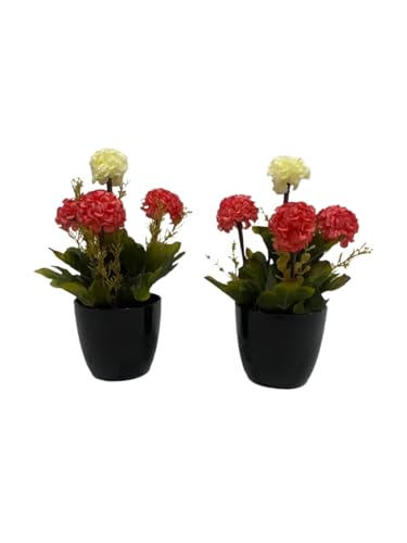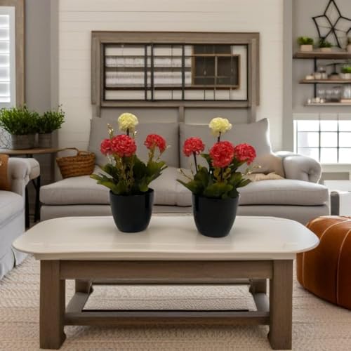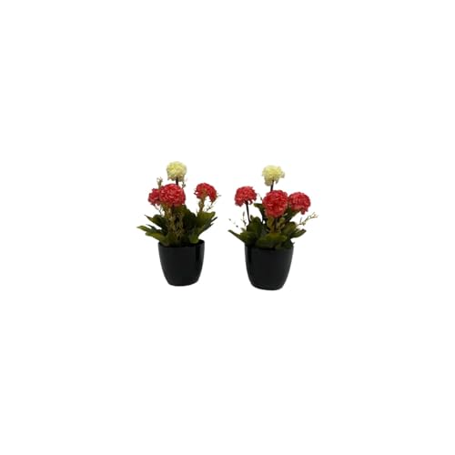 Generic - نباتات صناعية بوعاء أسود، زهور حمراء وصفراء، ديكور منزلي، قطعتان مقاس كل قطعه 9×9×25سم
