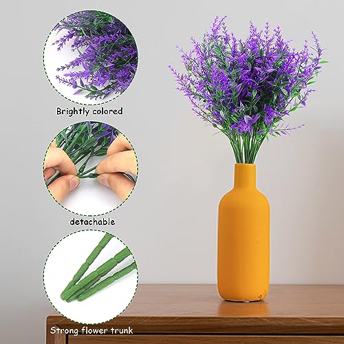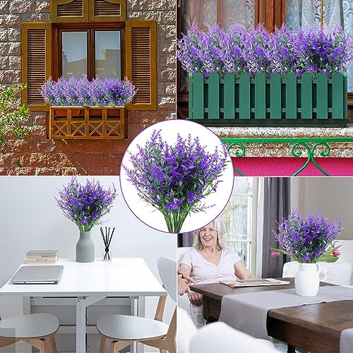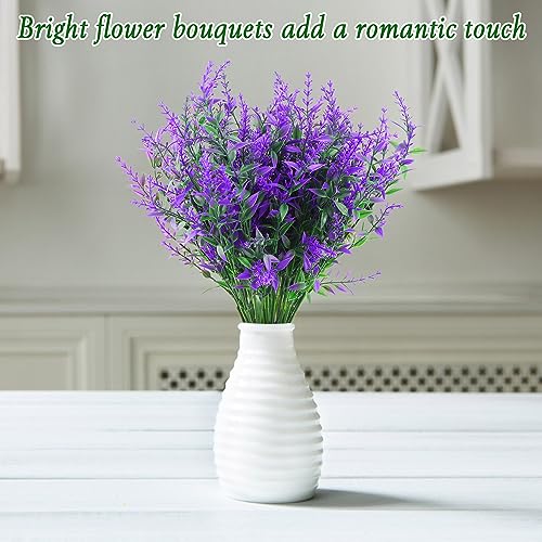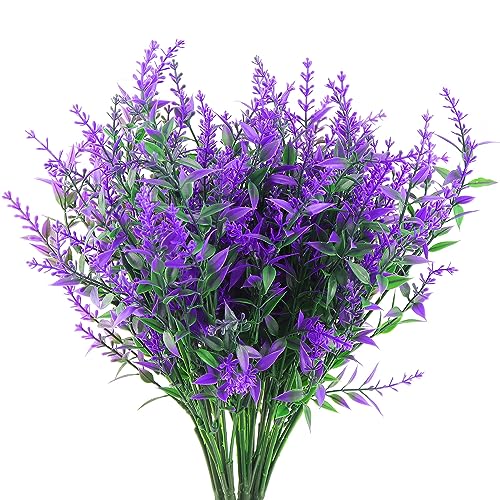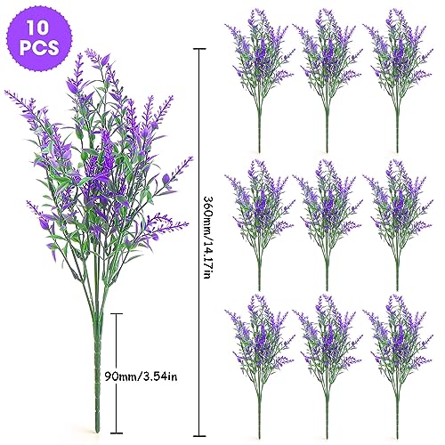 BAERTMY - نباتات وزهور صناعية في وعاء تبدو حقيقية مقاومة للأشعة فوق البنفسجية من زهور اللافندر الصناعية مناسبة للطاولات والحدائق المنزلية، عبوة من 10 مجموعات