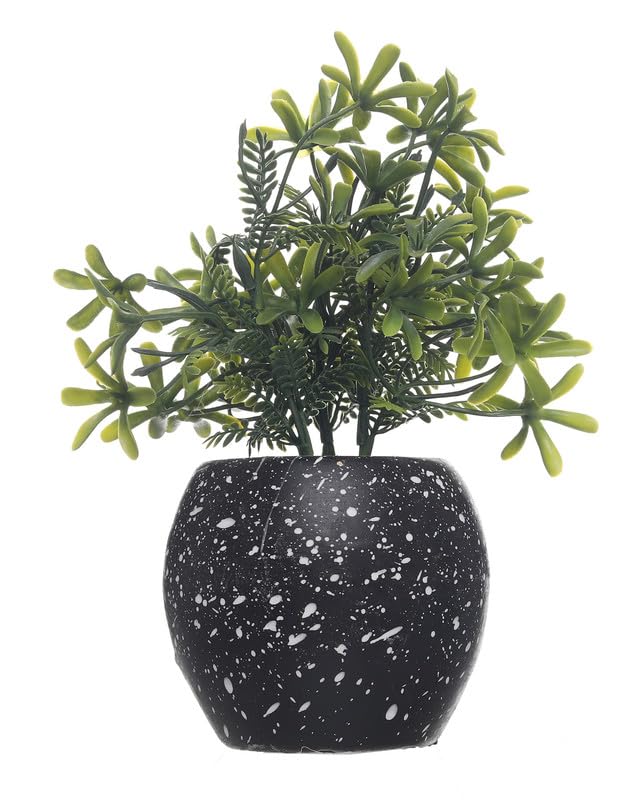 Generic - فازة زرع صناعي فخار لديكور المنزل , إسود وأبيض UnSaLi-9