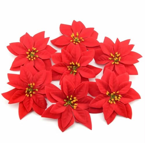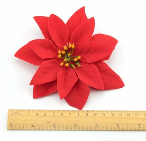 - مجموعة مميزة: 3 زهور بوانسيتيا حمراء اصطناعية مثالية لديكور عيد الميلاد وتزيين المنزل