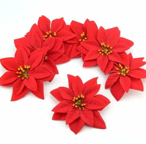 Generic - زهور البوانسيتيا الحمراء الاصطناعية، زينة عيد الميلاد، 3 قطع، زهورديكور منزلي