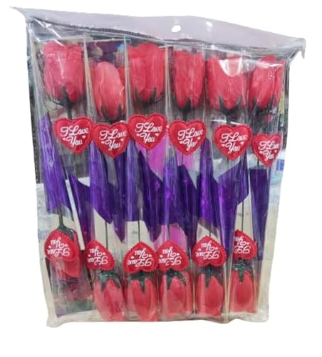 Generic - ورد صناعي وردة صناعية ملائمة كهدية رومانسية للتعبير عن الحب يمكن تقديمها ابدية للنساء في عيد وعيد الام والذكرى السنوية لحفلات الزفاف ، لون احمر 12 قطعة