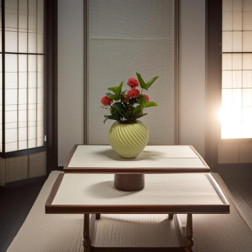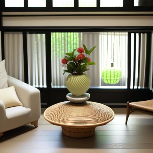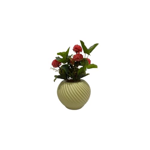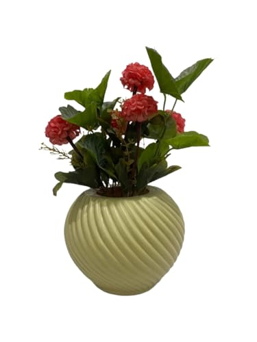 Generic - زهور صناعية وردية بوعاء بيج – مقاس 17×17×30 سم – فازة حلزونية فاخرة للديكور المنزلي والمكتبي