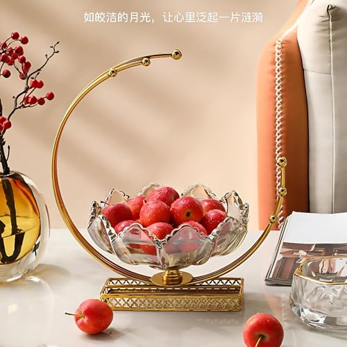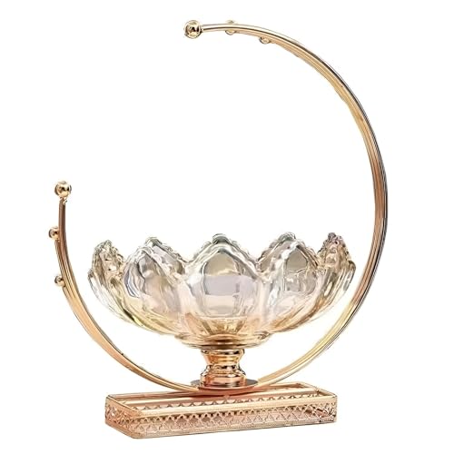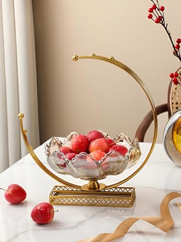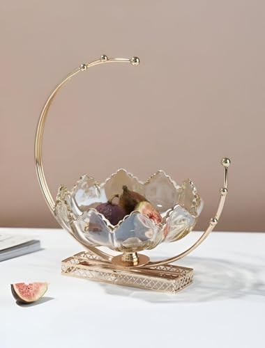 Generic - وعاء زجاجي من ارتيزان - عرض فاكهة مصنوع يدويًا مع دعم هلال ذهبي، 29 سم لديكور المنزل الراقي