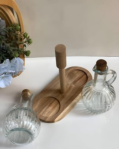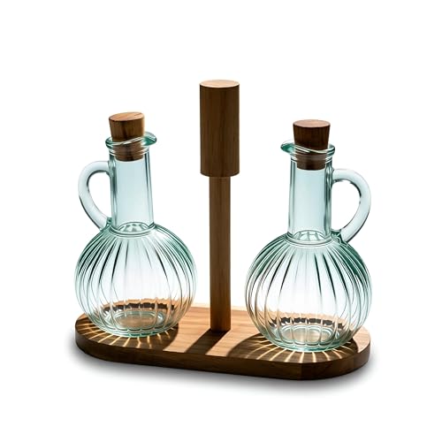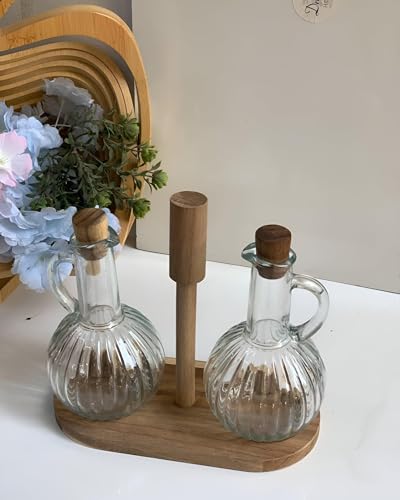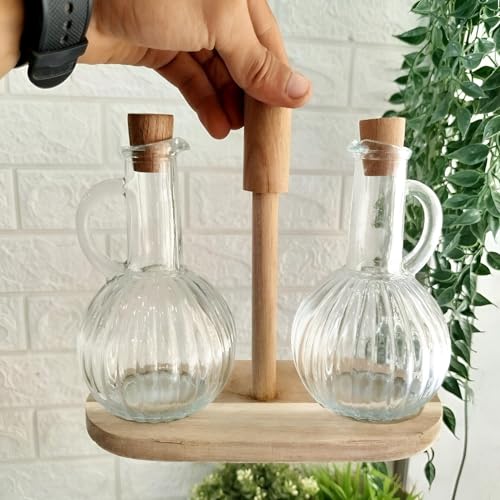 Generic - مجموعة زيت وخل زجاجية من ارتيزان مع دعامة من الخيزران - حاويات مصنوعة يدويا من البورسليكات، صب سلس، شاشة خشبية بسيطة