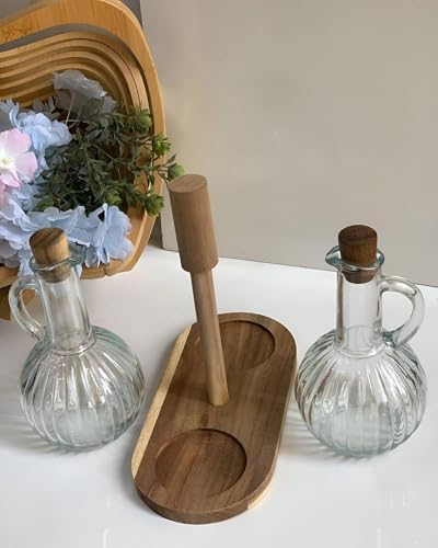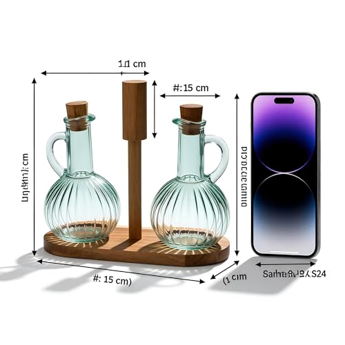 - تشتمل المجموعة على حامل من خشب الخيزران مصمم خصيصًا يثبت كلتا الزجاجتين بأمان في مكانهما، مما يبقيهما منظمتين ويسهل الوصول إليهما ويضيف لمسة دافئة وطبيعية إلى طاولة الطعام أو المطبخ.