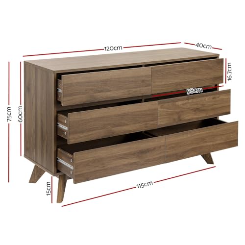 Artiss - دولاب تخزين بأدراج من ارتيس مع 6 أدراج، خزانة من خشب البلوط، طاولة جانبية للمكتب، خزائن أرضية لغرفة النوم وغرفة المعيشة، أثاث منزلي من خشب الجوز