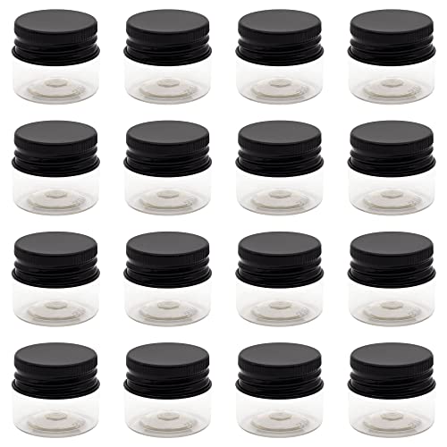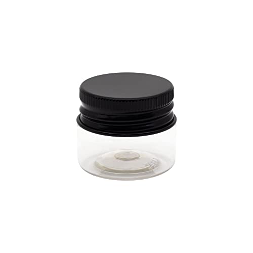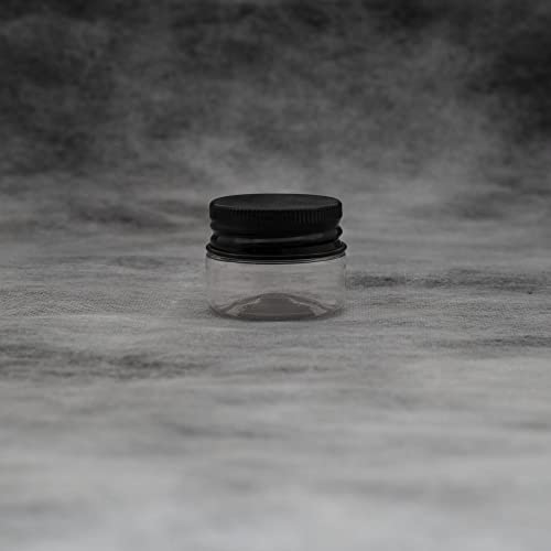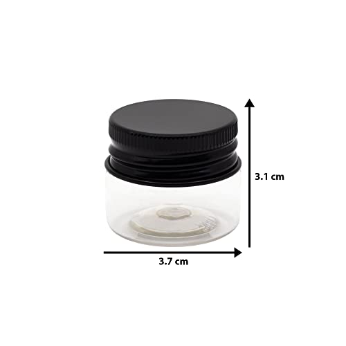 artistic - برطمان بلاستيك ابيض شفاف بسعة 20 ملم من فاني - غطاء معدني اسود - بلاستيك صحي عالي الجودة، عبوة قابلة للتعبئة والتفريغ، برطمان تخزين دائري فارغ