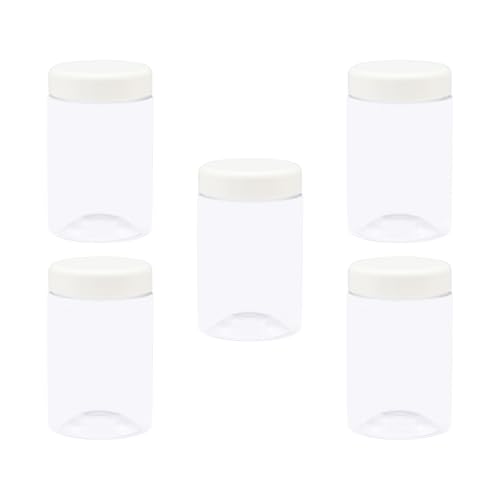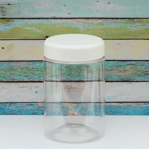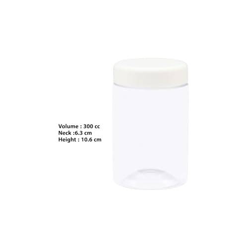 artistic - 6 قطع برطمان بلاستيك لون ابيض شفاف مقاس 300 مل - قطر 6.3 سم غطاء الوان مختلفة و طبه - فواغ عالي الجودة وصحيه لاعادة التعبئة تخزين - من ارتيستيك