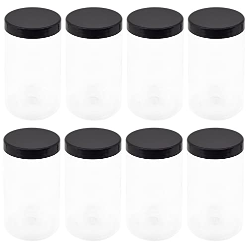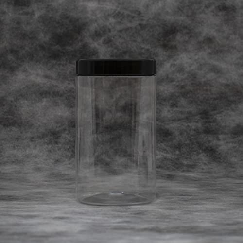 artistic - 6 قطعة برطمانات بلاستيك لون ابيض شفاف حجم 1000 ملي قطر 9 سنتي غطاء اسود و طبه فوارغ عالي الجودة وصحي لاعادة التعبئة برطمان تخزين علب فارغة دائرية من فنوني