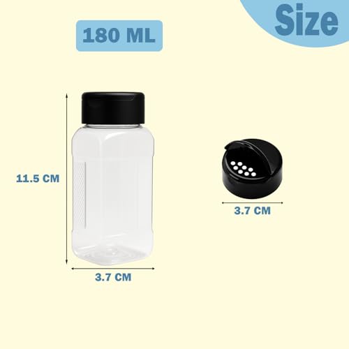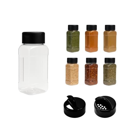 artistic - 6 قطع برطمان بلاستيك للتوابل لون ابيض شفاف مع غطاء لون اسود - بلاستيك عالي الجودة وصحي لاعادة التعبئة والتخزين (اختار الشكل المناسب) من فنوني (موديل 5)