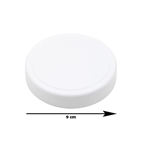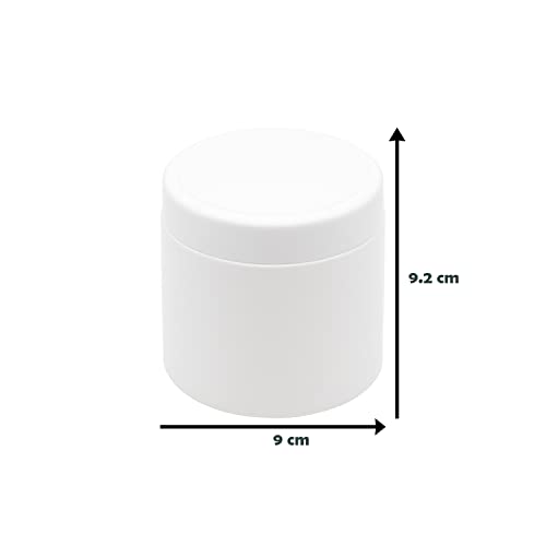 Artistic - 6 قطع من برطمانات بلاستيكية بيضاء لامعة 500 مل - قطر 9 سنتات - غطاء ابيض شفاف وادوية - برطمان تخزين بلاستيكي فارغ لاعادة التعبئة - دائري - ارتيستيك لامع وغطاء حامل