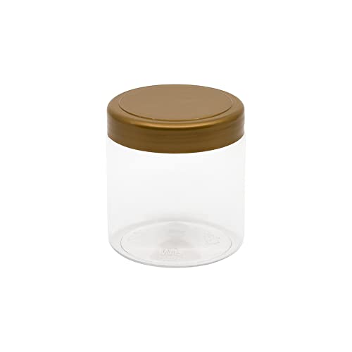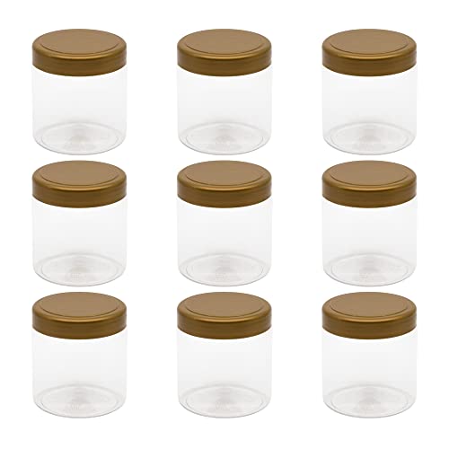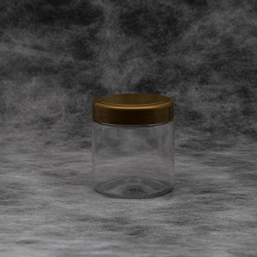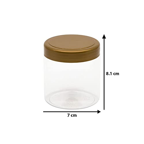 Artistic - برطمانات بلاستيكية بيضاء شفافة سعة 250 مل - قطر 7 قيراط - غطاء ذهبي مصنفر وادوية - برطمان تخزين فارغ بلاستيكي صحي عالي الجودة - من فوني مرتفع .