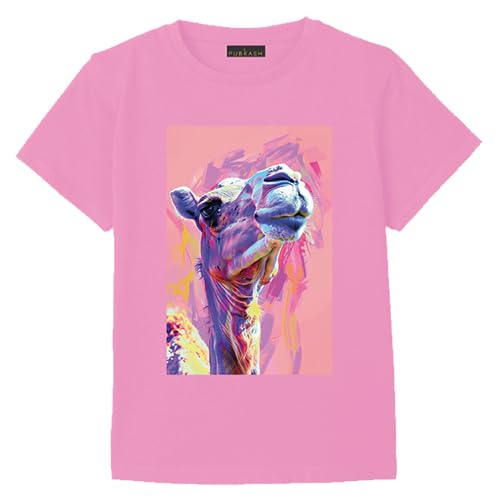Generic - تي شيرت بطباعة فنية بلون جملي من القطن بلون بينك وتصميم جرافيك للاطفال، مقاس من 3 الى 12 سنة