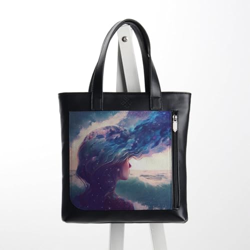 Generic - شنطة يد كبيرة توت من الجلد بتصميم جالاكسي من ارتيستيك، لون اسود