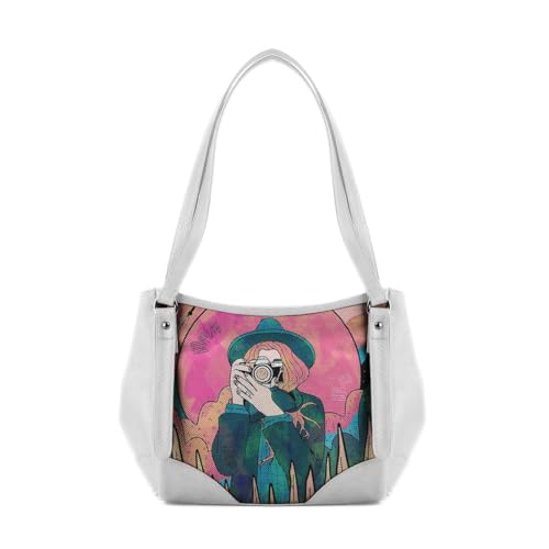 Generic - شنطة يد كبيرة توت من الجلد بتصميم طباعة فضائية فوتوغرافية، لون ابيض