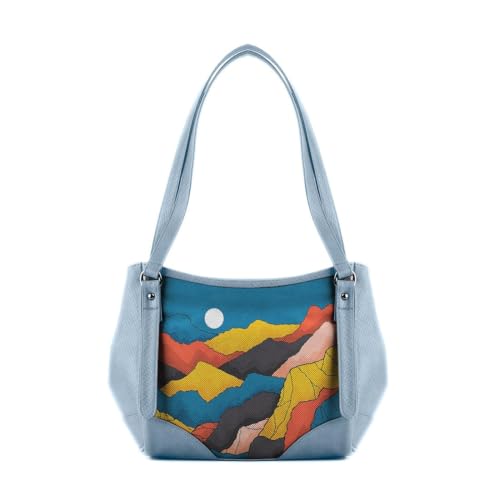 Generic - شنطة يد كبيرة توت من الجلد بتصميم المناظر الطبيعية الجبلية من ارتيستيك - ازرق مع تصميم متعدد الالوان