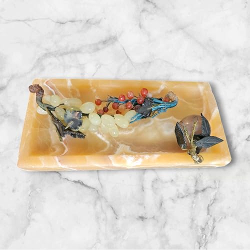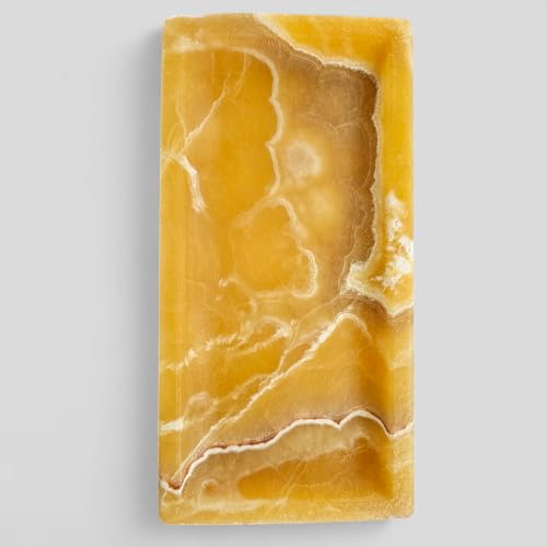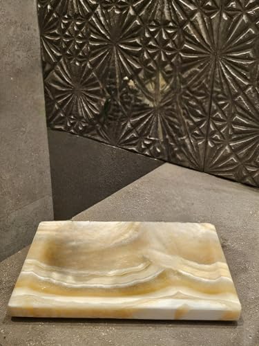 Artistic Tiles - صينية مصنوعة من رخام مرمر طبيعي حقيقي، صينية زينة مزخرفة للمطبخ والخزانة وديكور المنزل، مقاس 15 × 30 سم - صينية تقديم أنيقة من ارتيستيك تايلز