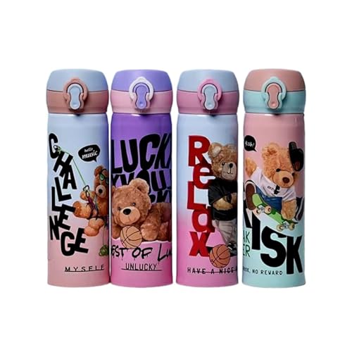ARTLABEL - زجاجة مياه متعددة الألوان من الفولاذ المقاوم للصدأ مانعة للتسرب للمدرسة والأطفال والبنات والبالغين للسفر والجيم من ارتليبيل، 500 مل - قطعة واحدة (دب (متنوع))