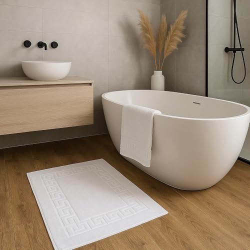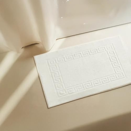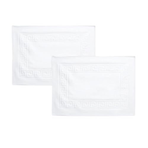 ART MOOD HOME - دواسة حمام قطن بجودة الفنادق ناعمة وماصة من القطن بنسبة 100%، سجادة استحمام عالية الكثافة بحواف مزينة بنقشة مفتاح يوناني لراحة القدم من ارت مود هوم، بوزن 300 جم مقاس 50 × 70 سم - 2 قطعة
