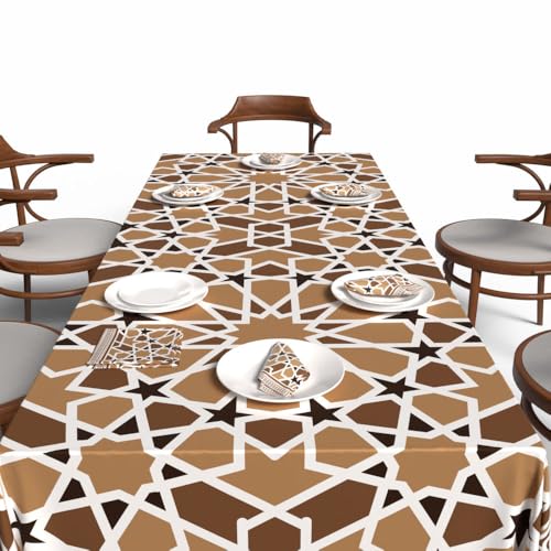 ART MOOD HOME - طقم مفرش طاولة ومناديل من الساتان بنسبة 100% من ارت مود هوم، 1 مفرش طاولة و6 مناديل، ناعم وحريري، مناسب لطاولات الطعام والمناسبات- أصالة- 140 عرض × 140 سم طول