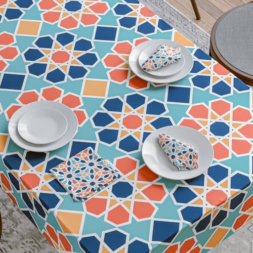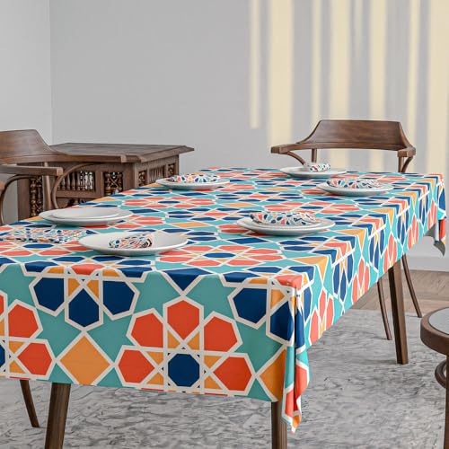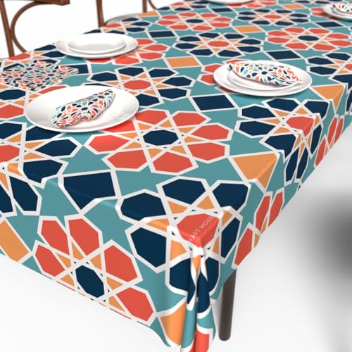 ART MOOD HOME - طقم مفرش طاولة ومناديل من الساتان بنسبة 1% من ارت مود هوم، مفرش طاولة واحد و6 مناديل، مفارش ناعمة وحريرية، مناسبة لطاولات الطعام والمناسبات - ارابيسك - 1.40 م عرض ×2.8 م طول