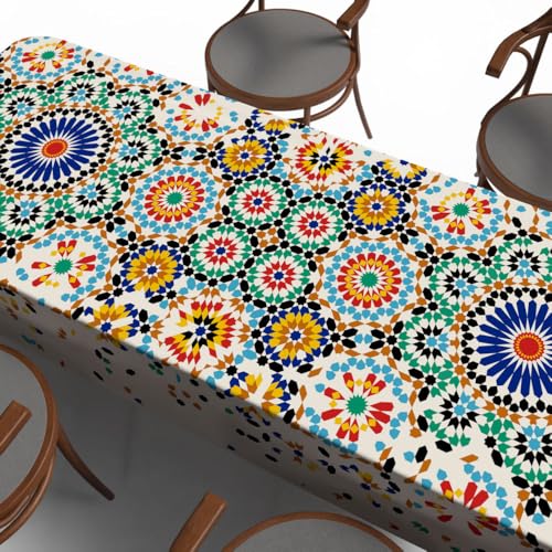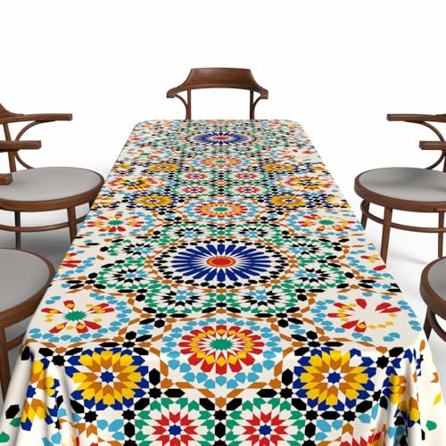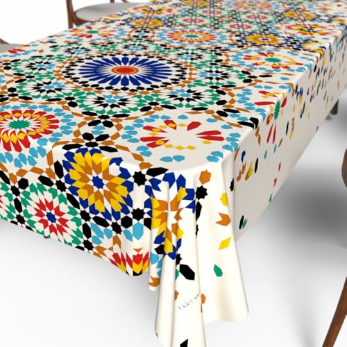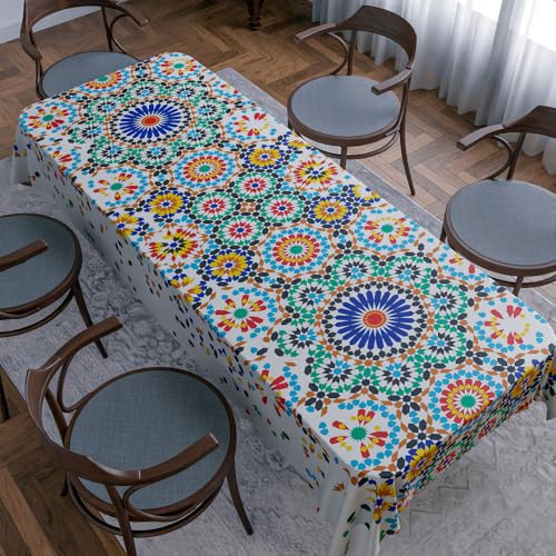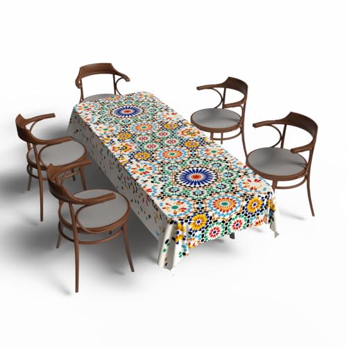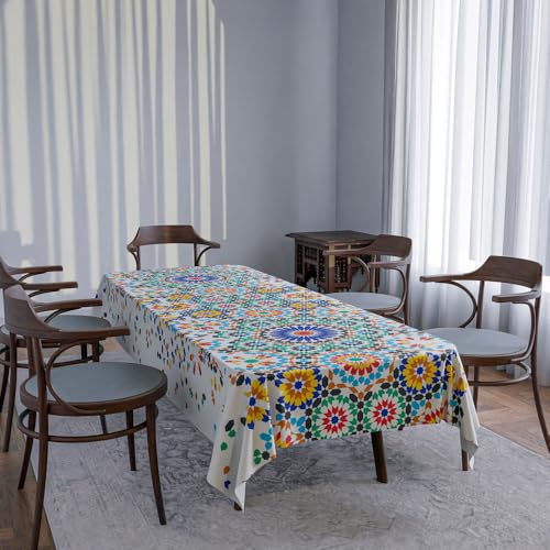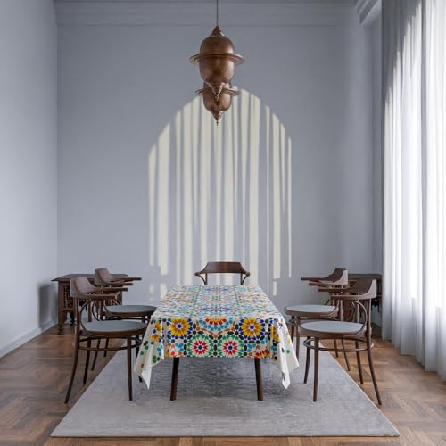ART MOOD HOME - مفرش ترابيزة من قماش البوليستر المتين المقاوم للماء بشكل مستطيل وملمس ناعم مقاوم للغبار وقابل للغسل في الغسالة لترابيزات تناول الطعام والمطابخ والمناسبات من ارتمود هوم، بهجة، 1.4 م عرض × 1.4 م طول