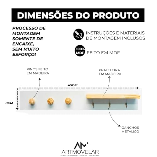 Artmovelar - سلسلة مفاتيح حائط من ارت موفيلار - خطاف منظمات بدبوسين ديكور جمالي للغرفة تنظيم الشقة والمنزل والديكور - ابيض 45 × 8 معدن 35.0 رطل 35.0
