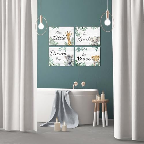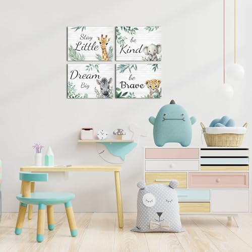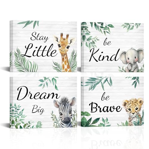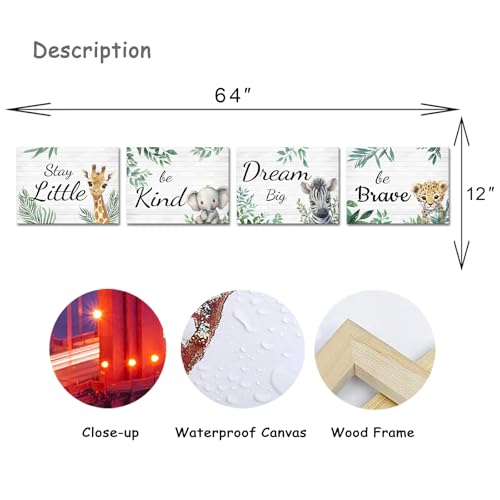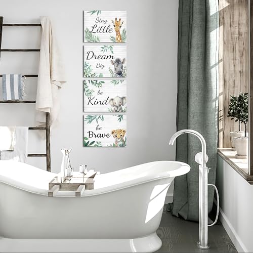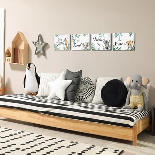 - لوحة فنية جدارية ساحرة: تتميز هذه المجموعة المكونة من 4 مطبوعات قماشية برسومات توضيحية رائعة للحيوانات الصغيرة مع رسائل ملهمة - Stay Little, be Kind, Dream Big, and be Brave