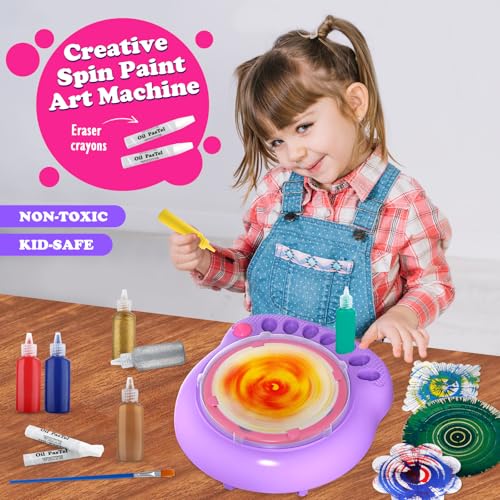 - آلة فنية دوارة ملونة إبداعية: انغمس في عالم فن الرش، حيث يمكنك إنشاء روائع فريدة والاستمتاع بالكثير من المرح مع الرسم الدوراني. أطلق العنان لإبداعك مع آلية الدوران المتينة لدينا التي تضمن جلسات فنية لا تنتهي وإبداعات فنية رائعة.