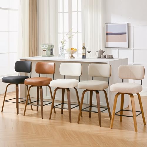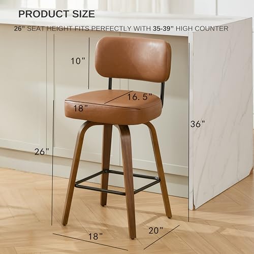 - [جمالية عصرية من منتصف القرن] - مزيج أنيق من الوظيفة والتصميم، تتميز هذه المقاعد الدوارة بارتفاع مقعد 26 انش، وهي مثالية لأسطح الطاولات مقاس 35-39 انش. يضفي الإطار المزخرف بالخشب المقترن بمقاعد البار المصنوعة من الجلد الصناعي مع الجلد النباتي جاذبية عصرية لا تتأثر بمرور الزمن، مما يجعلها إضافة مثالية لمقاعد المطبخ والحانات المنزلية وغرف الطعام وغير ذلك الكثير