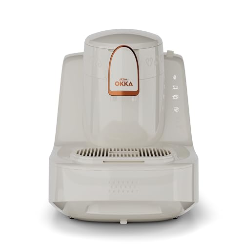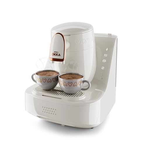Arzum - ماكينة تحضير القهوة التركية اوكا اليت الاوتوماتيك طراز OK0040-04 من ارزوم، لون أبيض ونحاسي