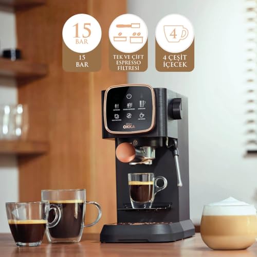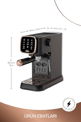 Arzum Okka - ماكينة تحضير اسبريسو نصف اوتوماتيك OK0034 من أرزوم أوكا، (مع فوهة بخار) أسود-نحاسي