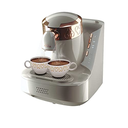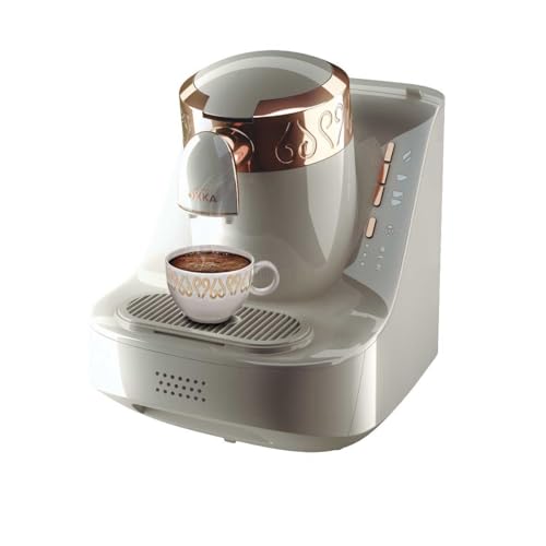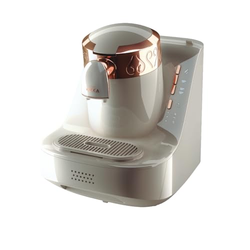 Arzum Okka - ماكينة تحضير القهوة التركي من اورزم اوكا، لون أبيض/نحاسي، موديل ok001