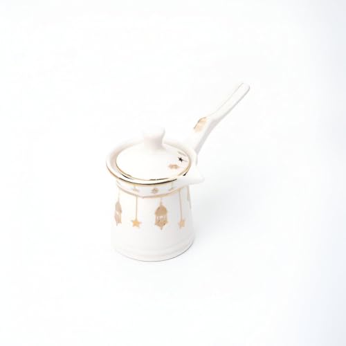 - تتضمن مجموعة البورسلين إبريق قهوة مفصل مع غطاء مطابق، مصمم بتفاصيل معقدة ولمسات ذهبية ترفع من أناقة إعداد طاولتك، مما يجعله مثاليًا لتقديم المشروبات التقليدية والحديثة برقي.