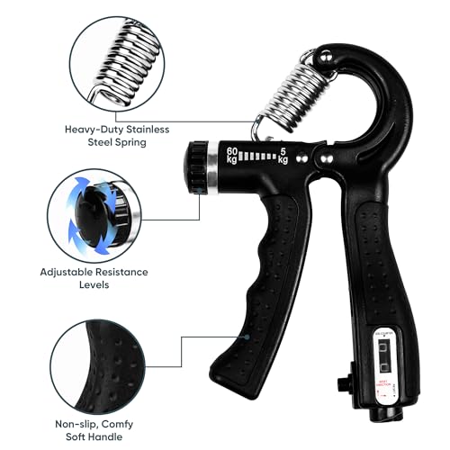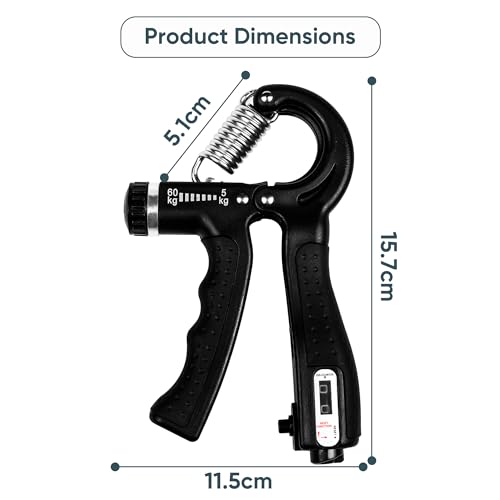 - عد ذكي ومقاومة قابلة للتعديل - تأتي أداه تمارين اليد بتصميم سهل التعديل بقوة تتراوح بين 5 كيلوجرام إلى 60 كيلوجرام. تتميز بعداد ميكانيكي مدمج في القاعدة. اضغط على الزر بقوة لبدء تشغيل العد التلقائي. يتيح لك العداد تتبع تكرار التمرين مع كل استخدام.