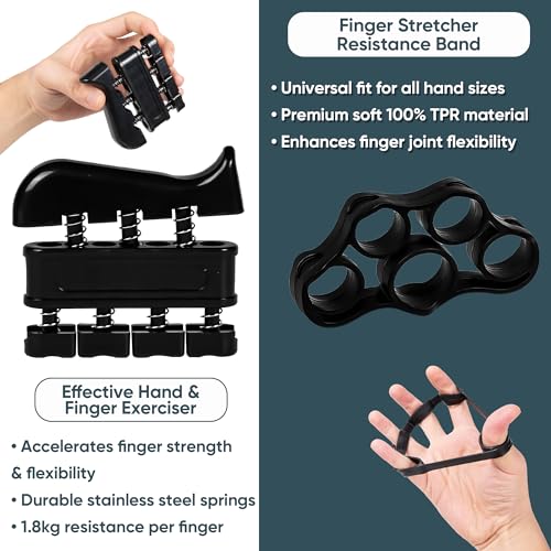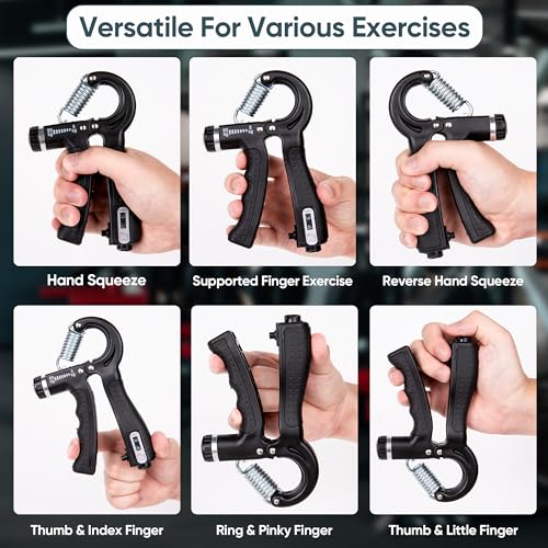 - مجموعة أداوات تمارين اليد مكونة من 6 قطع - عزز قوة قبضتك مع أداة تمارين وتقوية قبضة اليد. تتضمن المجموعة أداة تمارين اليد وتمرين الأصابع وممدد الأصابع وحلقة وبيض لتخفيف التوتر وكرة لعلاج باليد. تستهدف المجموعة قوة الإمساك ومرونة الأصابع والساعد وقوة المعصم.