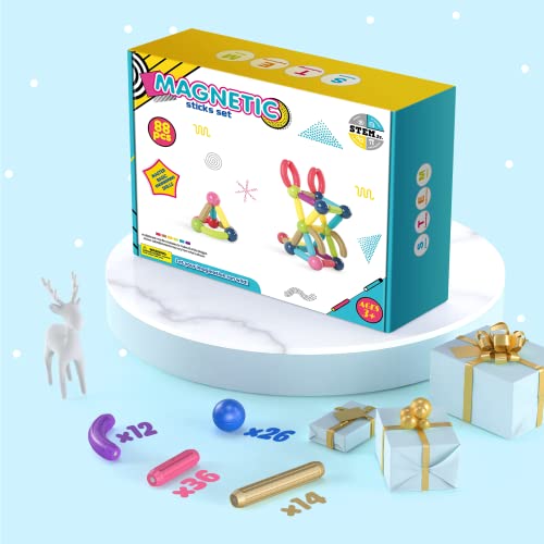 Asago - مجموعة لعبة بناء مكعبات مغناطيسية من 88 قطعة بأشكال كرة وعصا وعصا منحنية للأطفال الصغار، لعبة تنموية لأطفال الروضة للبنات والأولاد بعمر من 2 إلى 6 سنوات من اساجو
