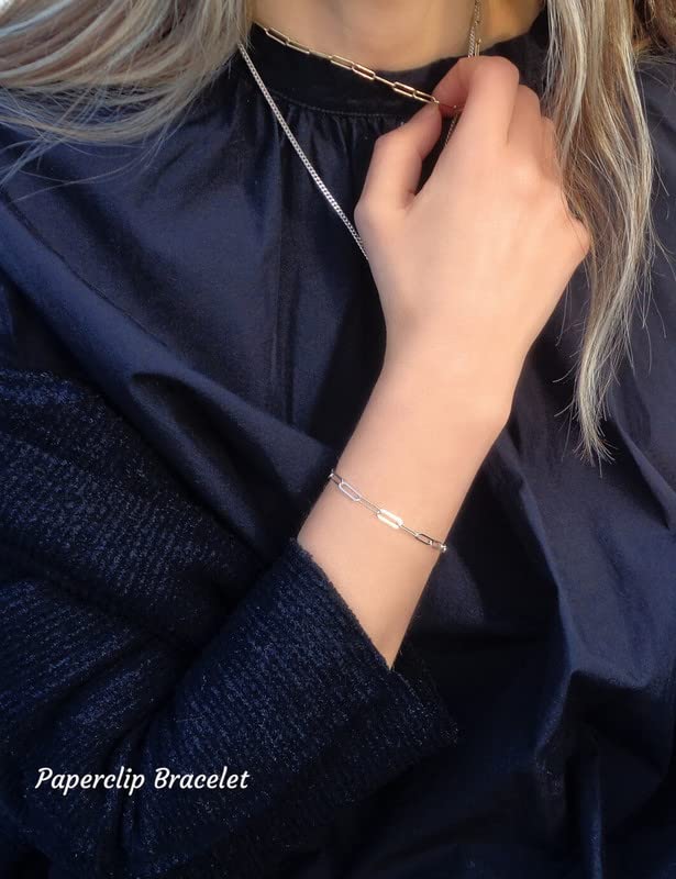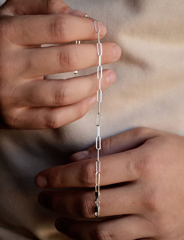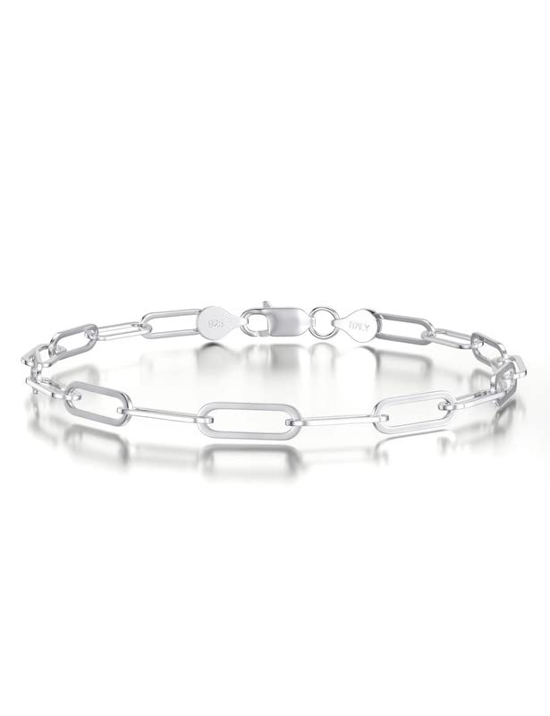 generic - ASDULL Silver Bracelets for women men 4mm 925 Sterling Silver Clasp Paperclip Chain Bracelet for men 6.5-9 Inches, 8.5, no gemstone