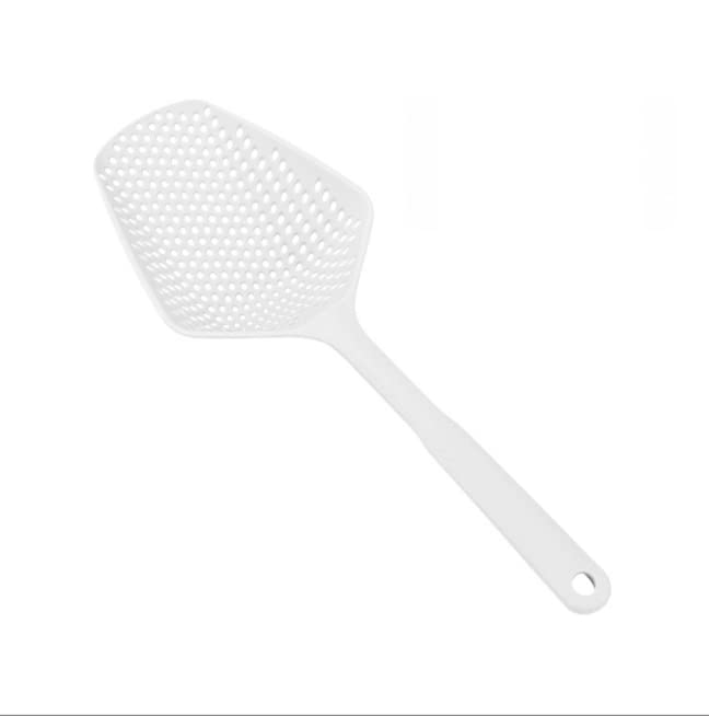 ASEANAO - مصفاة مطبخ من النايلون على شكل مغرفة بيد طويلة تستخدم لتصفية المياه أو كشط الثلج تجمع بين وظيفة المغرفة والمصفاة من اسيناو (لون رمادي)