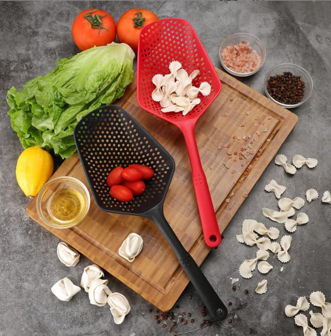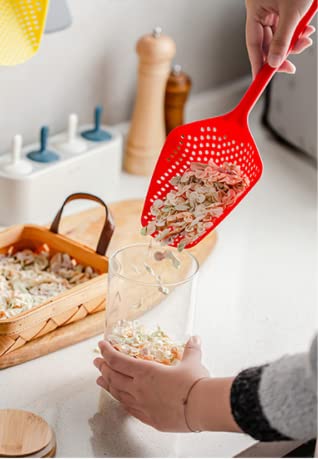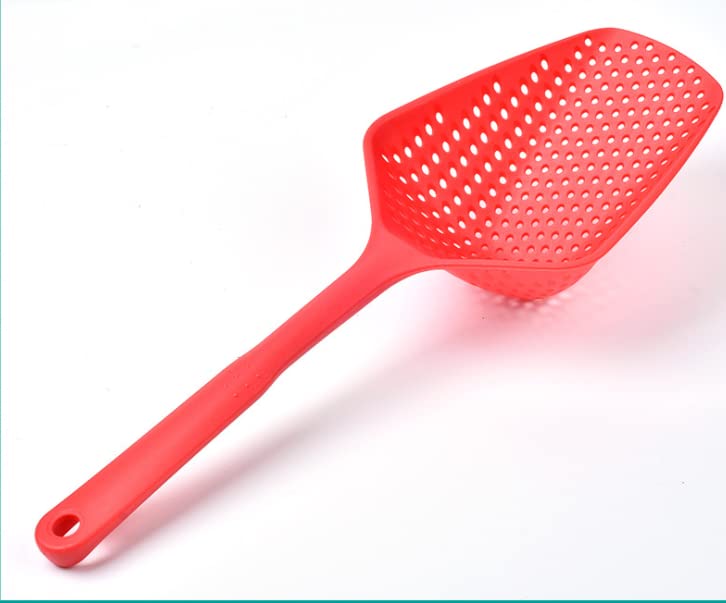 ASEANAO - مصفاة مطبخ من النايلون على شكل مغرفة بيد طويلة تستخدم لتصفية المياه أو كشط الثلج تجمع بين وظيفة المغرفة والمصفاة من اسيناو (أحمر)