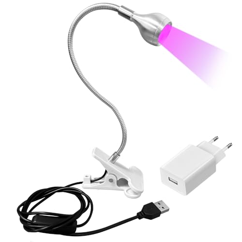 ASENTER - مصباح أظافر جل بالأشعة فوق البنفسجية 5 وات لصمغ طلاء الأظافر الجل من اسينتر، مصابيح تجفيف صغيرة لمعالجة الراتنج بالأشعة فوق البنفسجية مع مشبك فضي