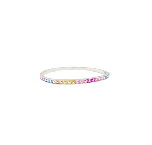 Asfour Crystal - سوار مرصع باحجار زركون متعددة الالوان بشكل مربعات عاكسة من عصفور كريستال مصنوع الفضة عيار 925- لون فضي One Size فضة استرليني زركونيا مكعب للنساء
