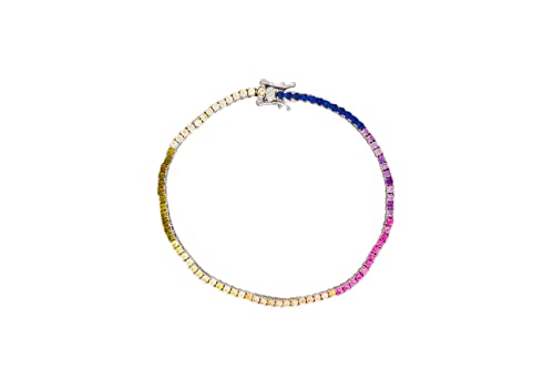 Asfour Crystal - سوار تنس فضة استرليني عيار 925 مرصع باحجار دائرية متعدد الالوان One Size زركونيا مكعب للنساء